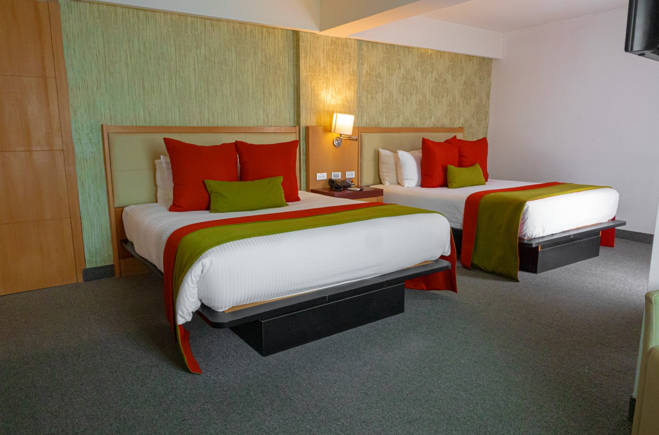 Las habitaciones son confortables y modernas, disponen de escritorio, tv plana, mini nevera, cafetera, maletero y mesa de planchar.